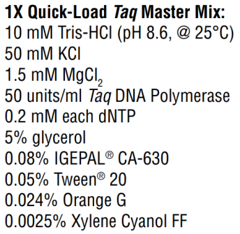 Commercial 2X Quick-Load Taq Master Mix has 0.024% Orange G (see above).