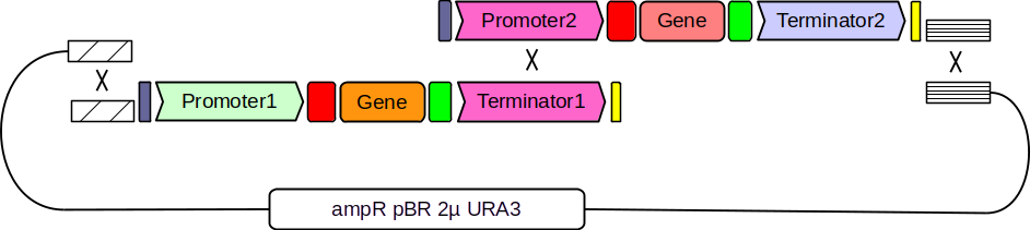 - The 2µ ORI gives a certain copy number of the vector. Having lower or higher copy number would make it possible to fine tune gene expression.