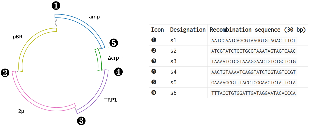 | pTA6 | ampR | pBR | CEN_ARS | KanMX4 | ΔCRP | ||