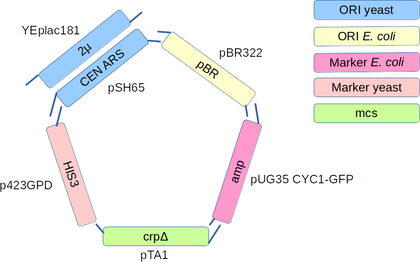 | pTA3 | amp | pBR | 2µ | HIS3 | ΔCRP |