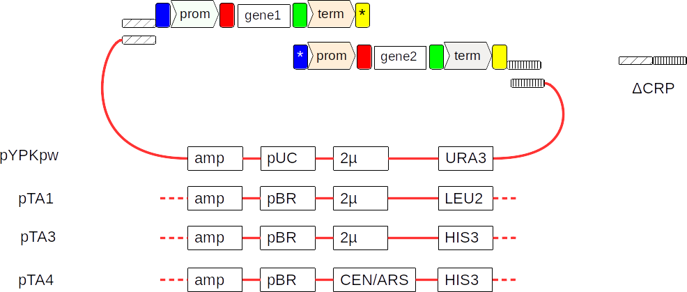 | pTA4 | amp | pBR | CEN/ARS | HIS3 | ΔCRP |