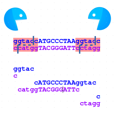 As you can see above, the BsaI site is not symmetric and the recognition site is not a palindrome as in the previous examples.