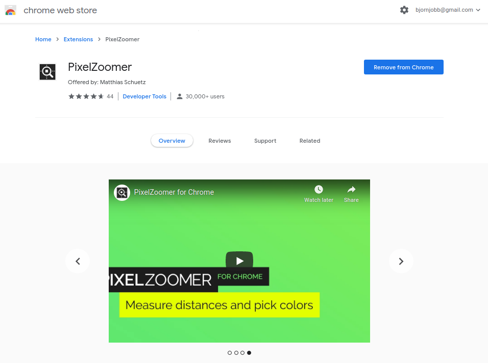 For Google Chrome there is a tool for measuring distance in images called “PixelZoomer” (Fig 18). Y