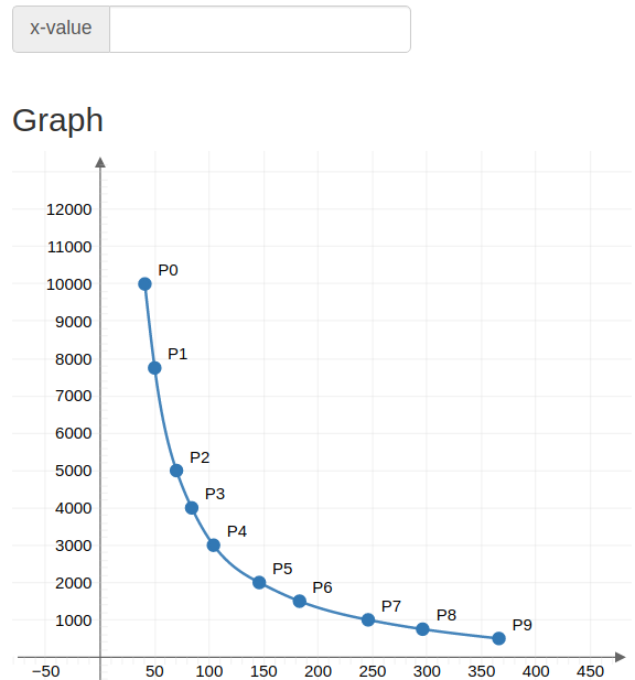 Format a table with x-position in first column and basepairs in the second as in the image above. Copy the table and and paste into a Cubic spline interpolation tool available on-line here. Click the blue Interpolate button.