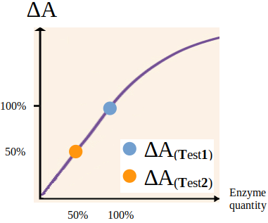 The protocol specifies two experiments (Figure 6), Test1 and Test2, where the latter contain half as much cells. If the assay is linear, Test1 should produce twice the absorbance compared to Test2.