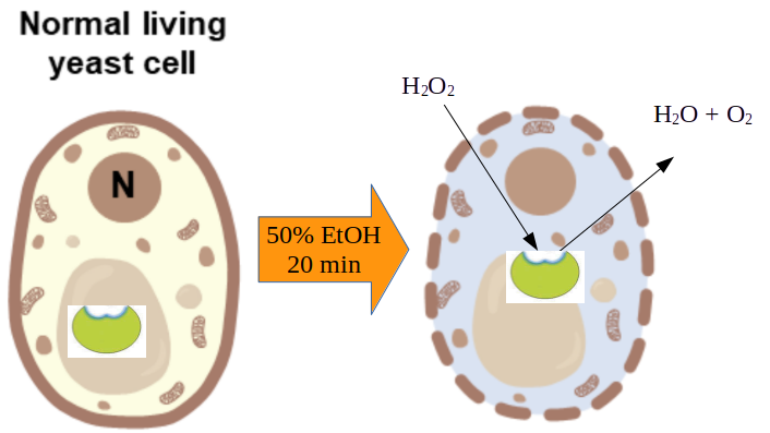 The permeabilization protocol is very simple. The yeast cells are incubated with ethanol for 20 min in a phosphate buffer.