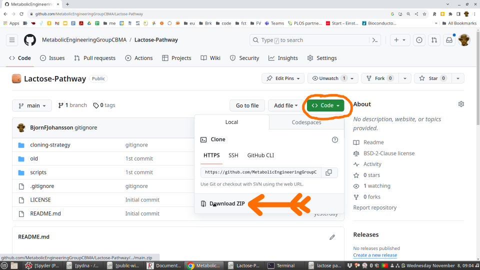 A lactose metabolic pathway for S. cerevisiae was formulated using this method. The pathway contains two expression cassettes with the Kluyveromyces lactis beta-D-galactosidase LAC4 and the LAC12 Kluyveromyces lactis LAC12 gene for lactose permease. You can download the files by using the Code button and then the Download ZIP button: