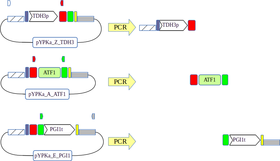 This document will show you how to assemble an expression vector called pTA1_TDH3_ScATF1_PGI1 using the Yeast Pathway Kit.