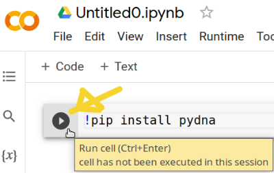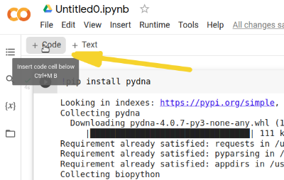 Copy the code below into the first cell. This code will tell the python package manager pip to install the pydna package which has the functionality we need.