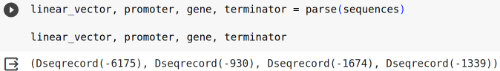 linear_vector, promoter, gene, terminator = parse(sequences)
