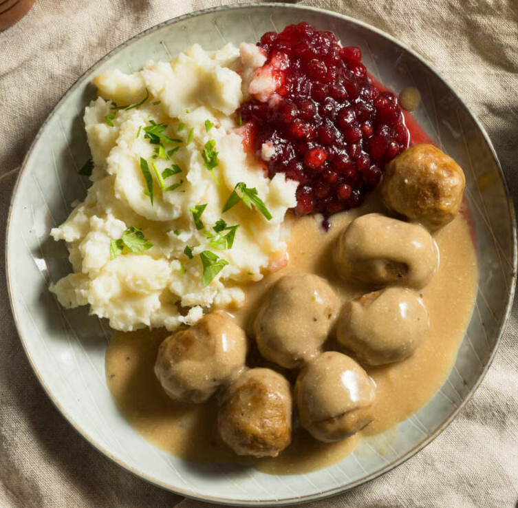 🇵🇹 As almôndegas suecas são um dos pratos mais conhecidos e apreciados da Suécia, frequentemente servidas com puré de batata, molho de natas e compota de arando (lingonberry). As pequenas e suculentas almôndegas são normalmente feitas com uma mistura de carne de vaca e porco picada, temperadas com cebola, sal, pimenta e, por vezes, pimenta-da-jamaica, o que lhes confere um sabor suave mas característico. Para um público português, podem lembrar as “almôndegas”, mas distinguem-se pelo seu molho cremoso e pela compota agridoce de arando, que cria um equilíbrio de sabores único. Este prato é uma parte importante da cozinha tradicional sueca, sendo servido tanto em refeições do dia a dia como em ocasiões festivas.