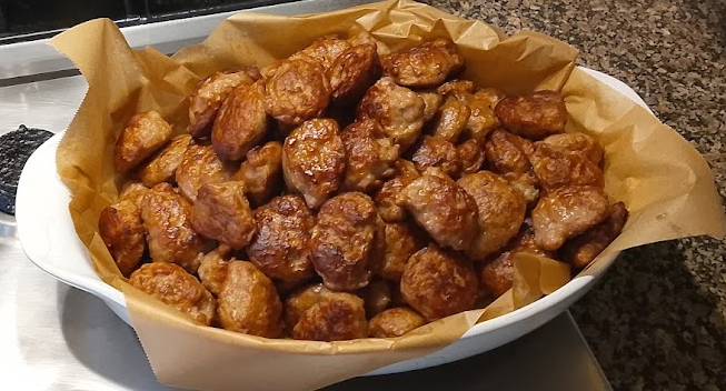 Esta receita rende aproximadamente a quantidade de almôndegas mostrada na imagem.