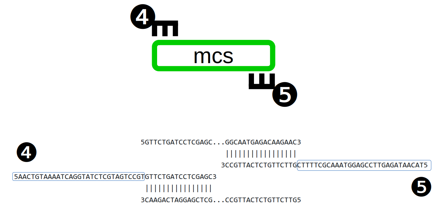 Five different specific flanking sequences are added to the end of each of the PCR products, (❶..❺) in Figure 2.